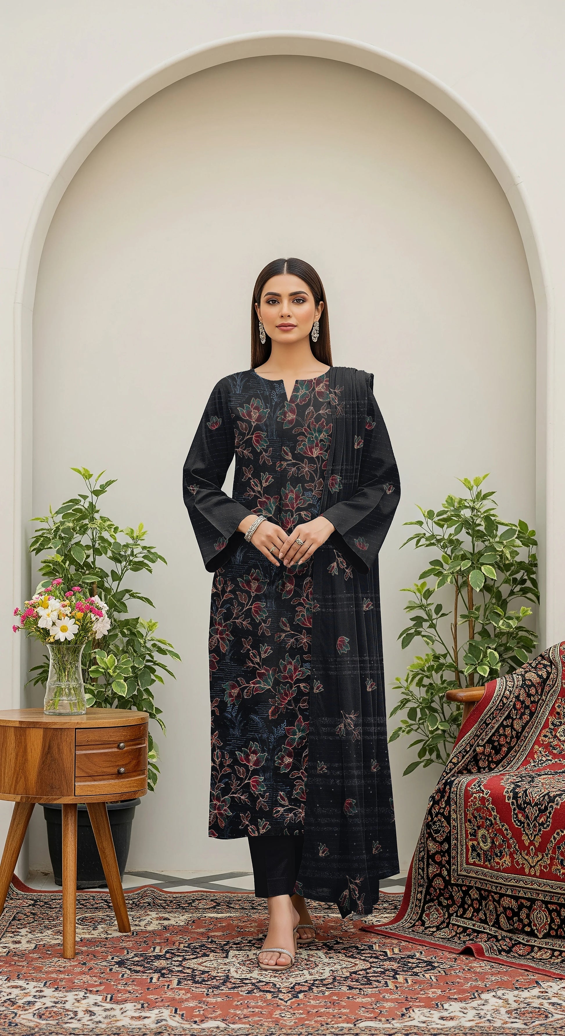 BLACK DHANAK EMBROIDERED | 3 PIECE | UNSTITCHED | 4203