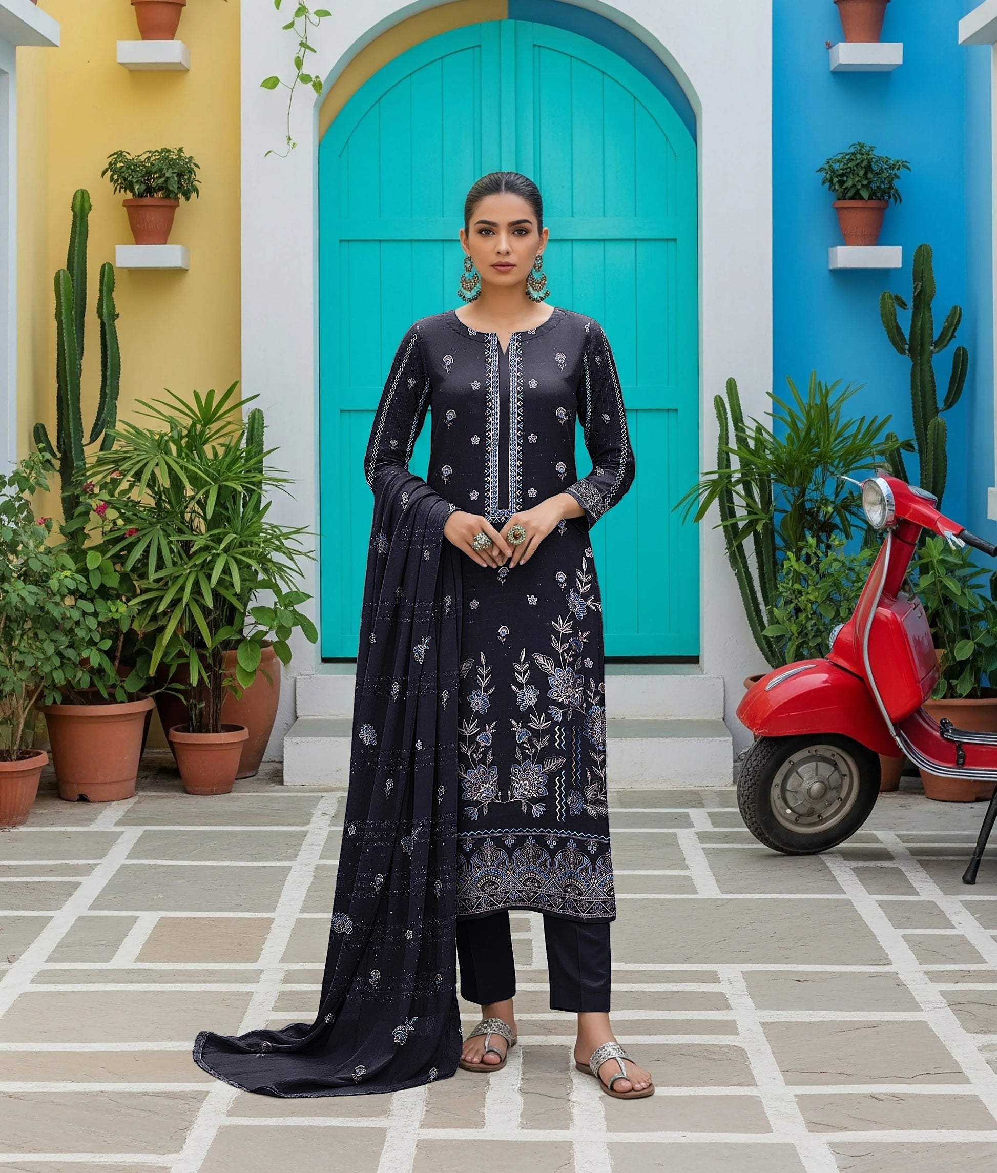 BLACK DHANAK EMBROIDERED | 3 PIECE | UNSTITCHED | 4305