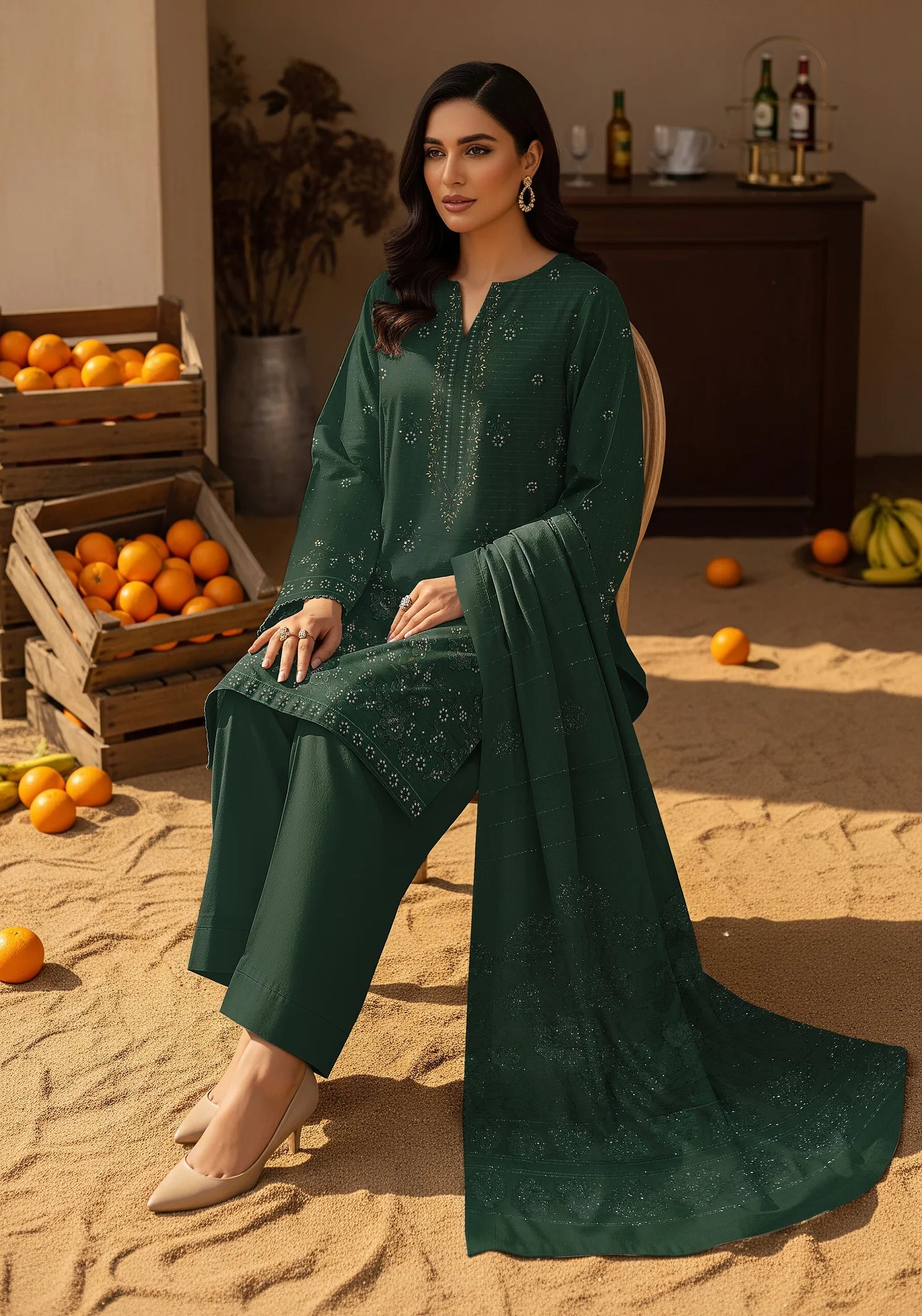 BEATLE GREEN DHANAK EMBROIDERED | 3 PIECE | UNSTITCHED | 3906