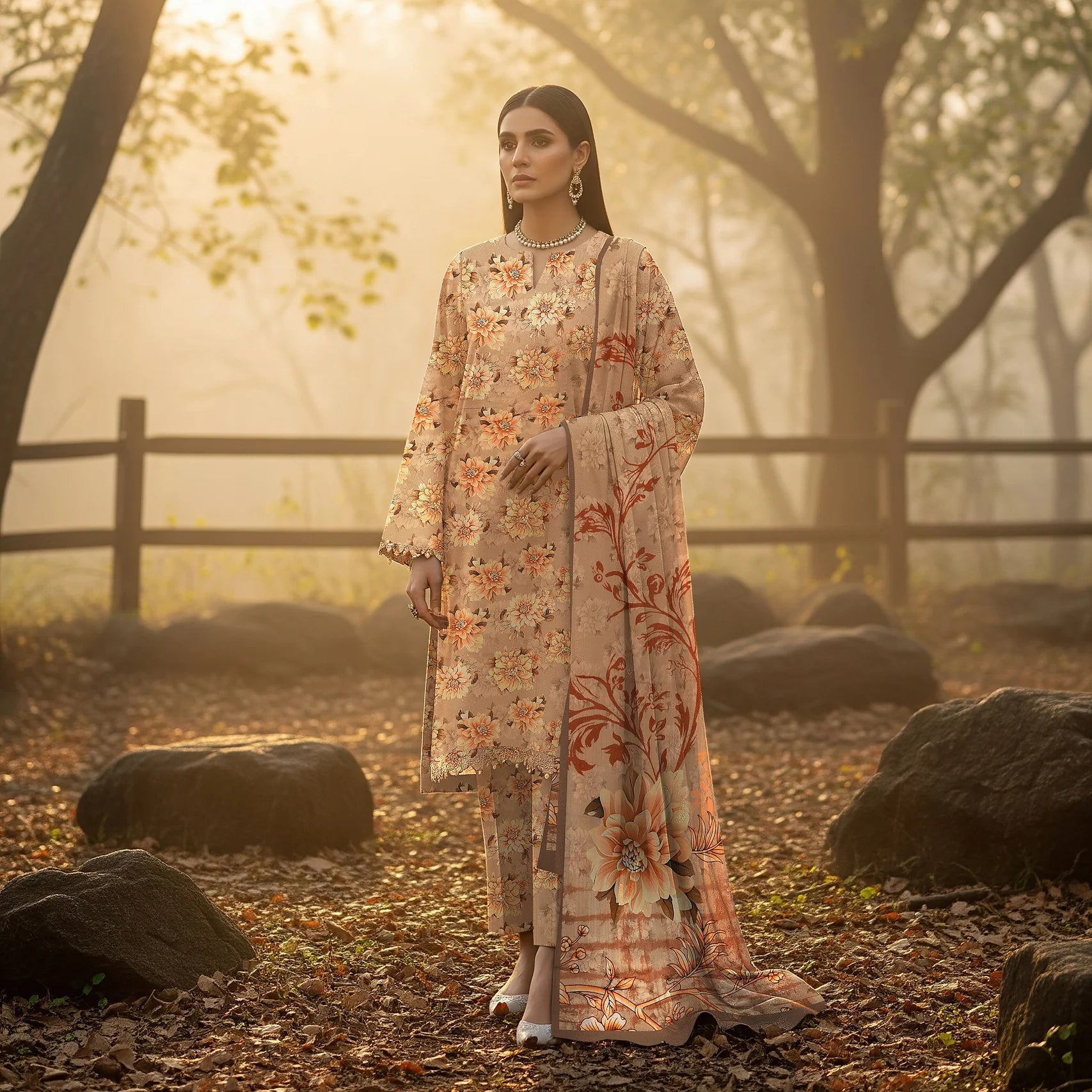BEIGE DHANAK EMBROIDERED | 3 PIECE | UNSTITCHED | 3903