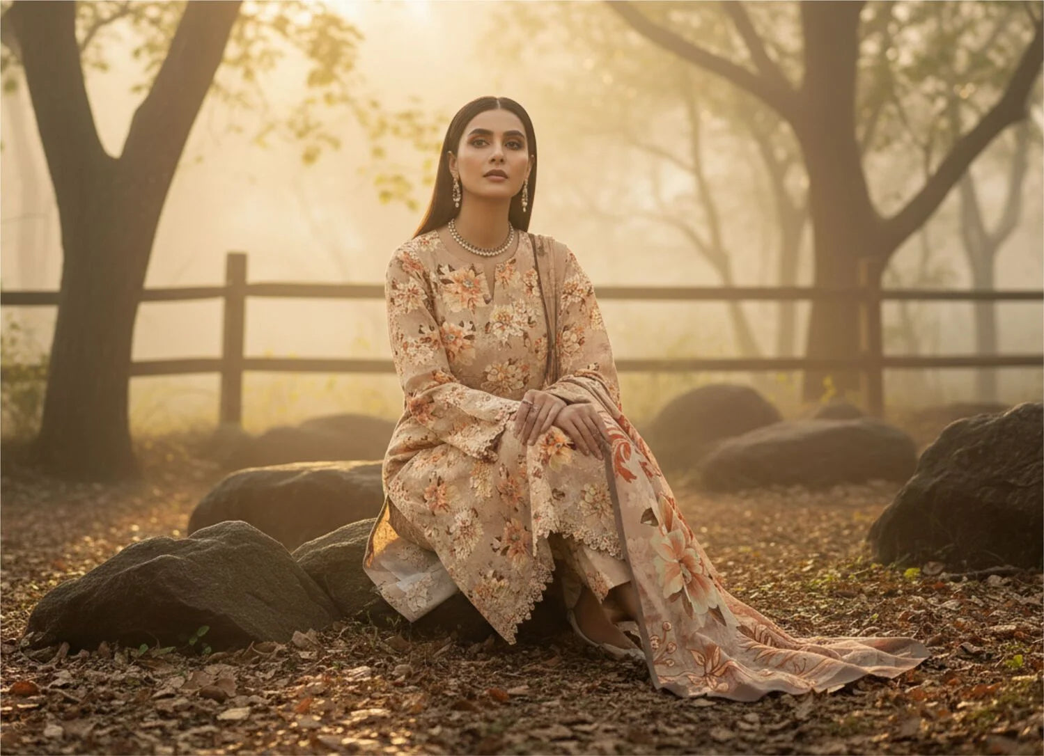 BEIGE VISCOSE EMBROIDERED | 3 PIECE | UNSTITCHED | 3604