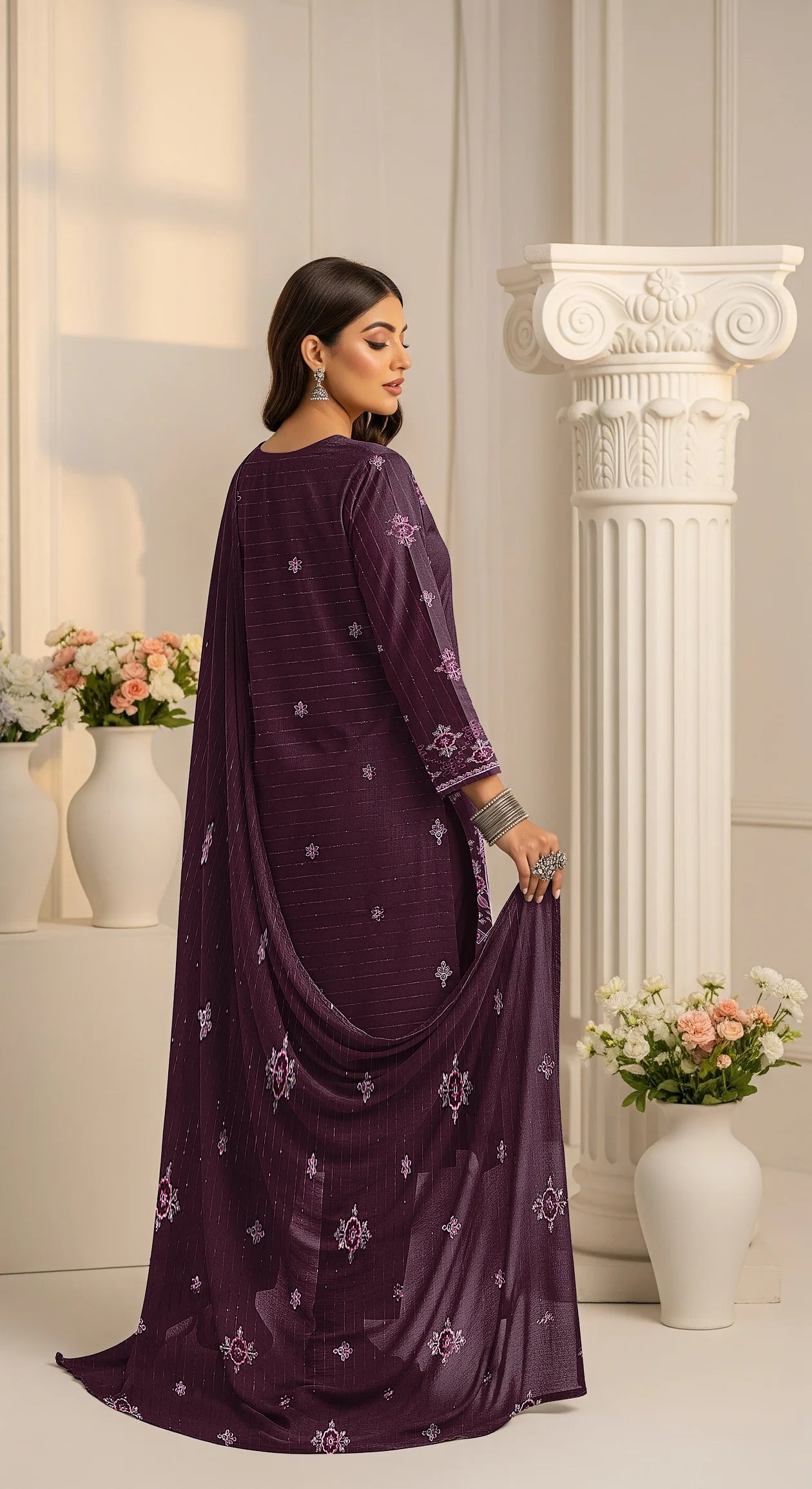 DARK PURPLE DHANAK EMBROIDERED | 3 PIECE | UNSTITCHED | 3902