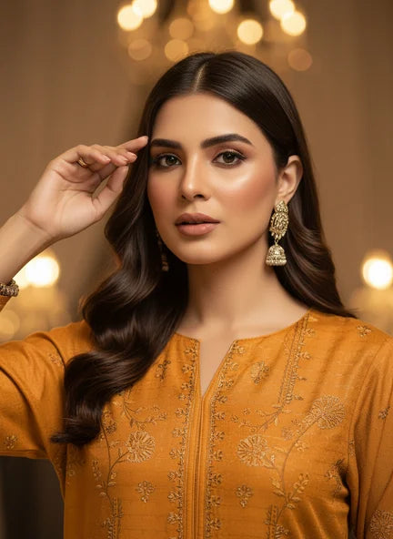 MUSTARD GOLD DHANAK EMBROIDERED | 3 PIECE | UNSTITCHED | 3803