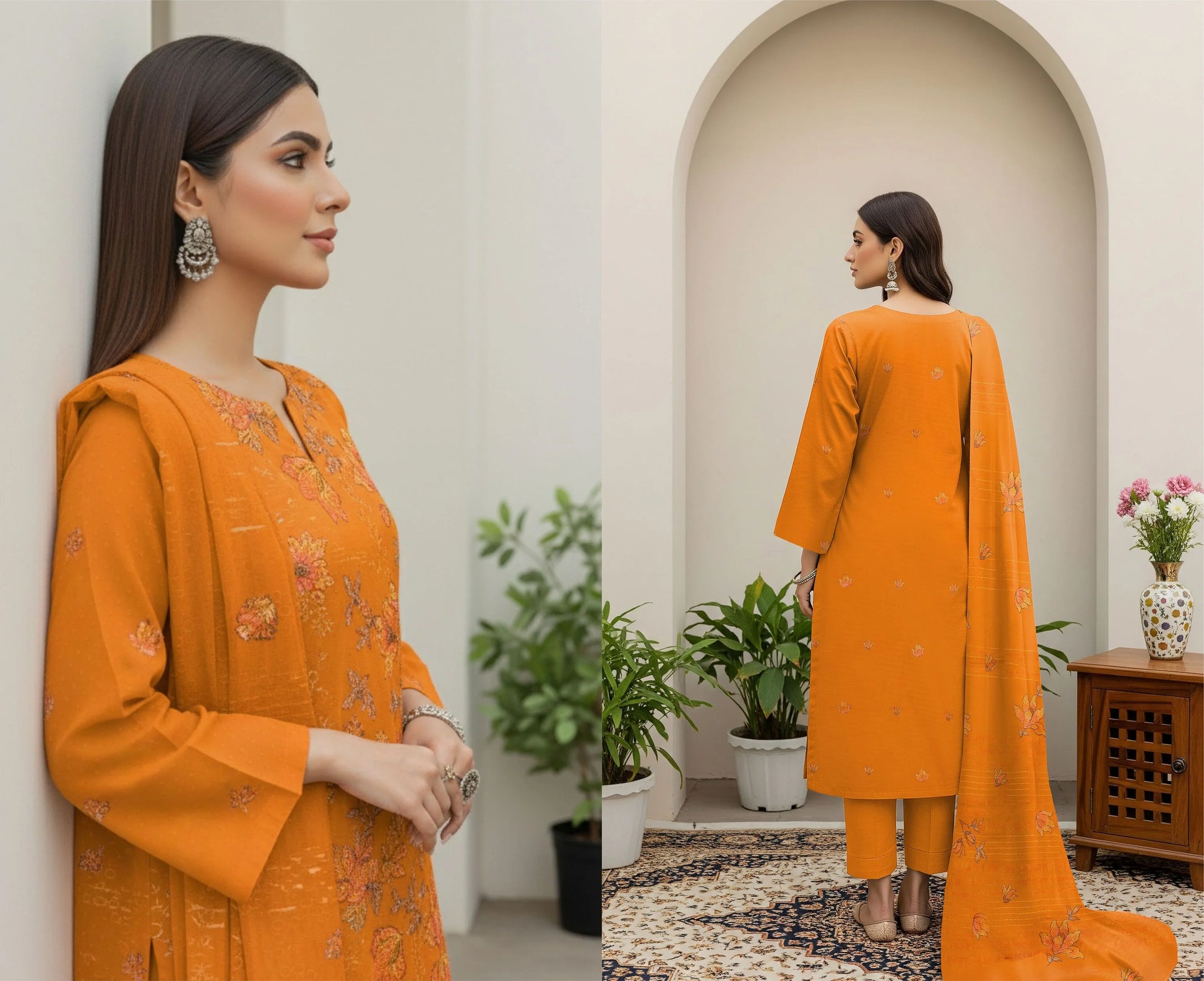 MUSTARD DHANAK EMBROIDERED | 3 PIECE | UNSTITCHED | 4001