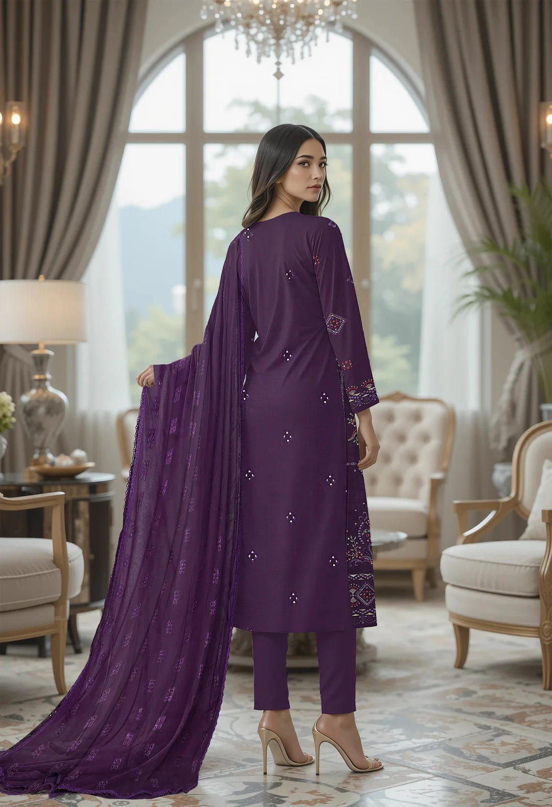 PURPLE VISCOSE EMBROIDERED | 3 PIECE | UNSTITCHED | 320A