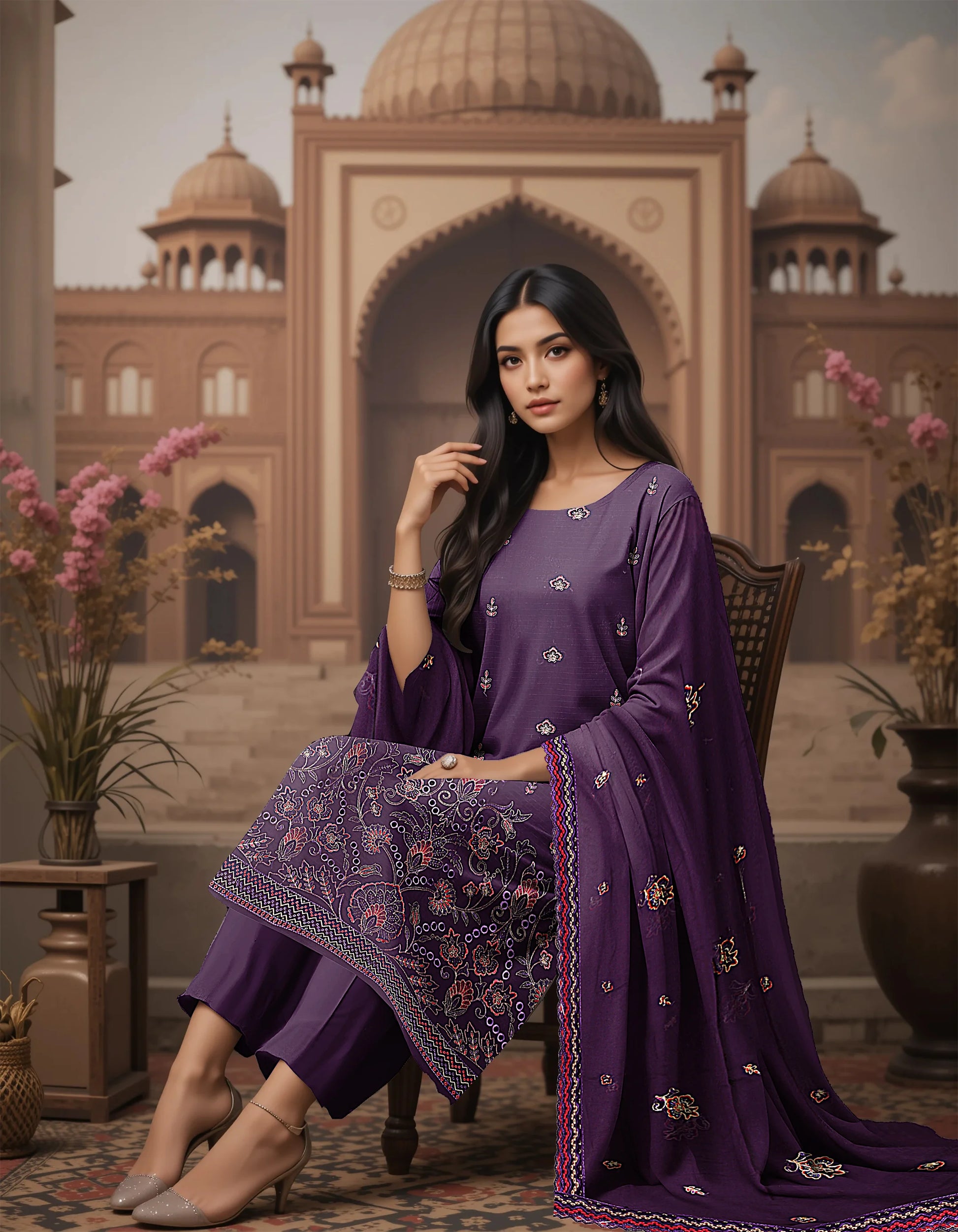 PURPLE VISCOSE EMBROIDERED | 3 PIECE | UNSTITCHED | 3502