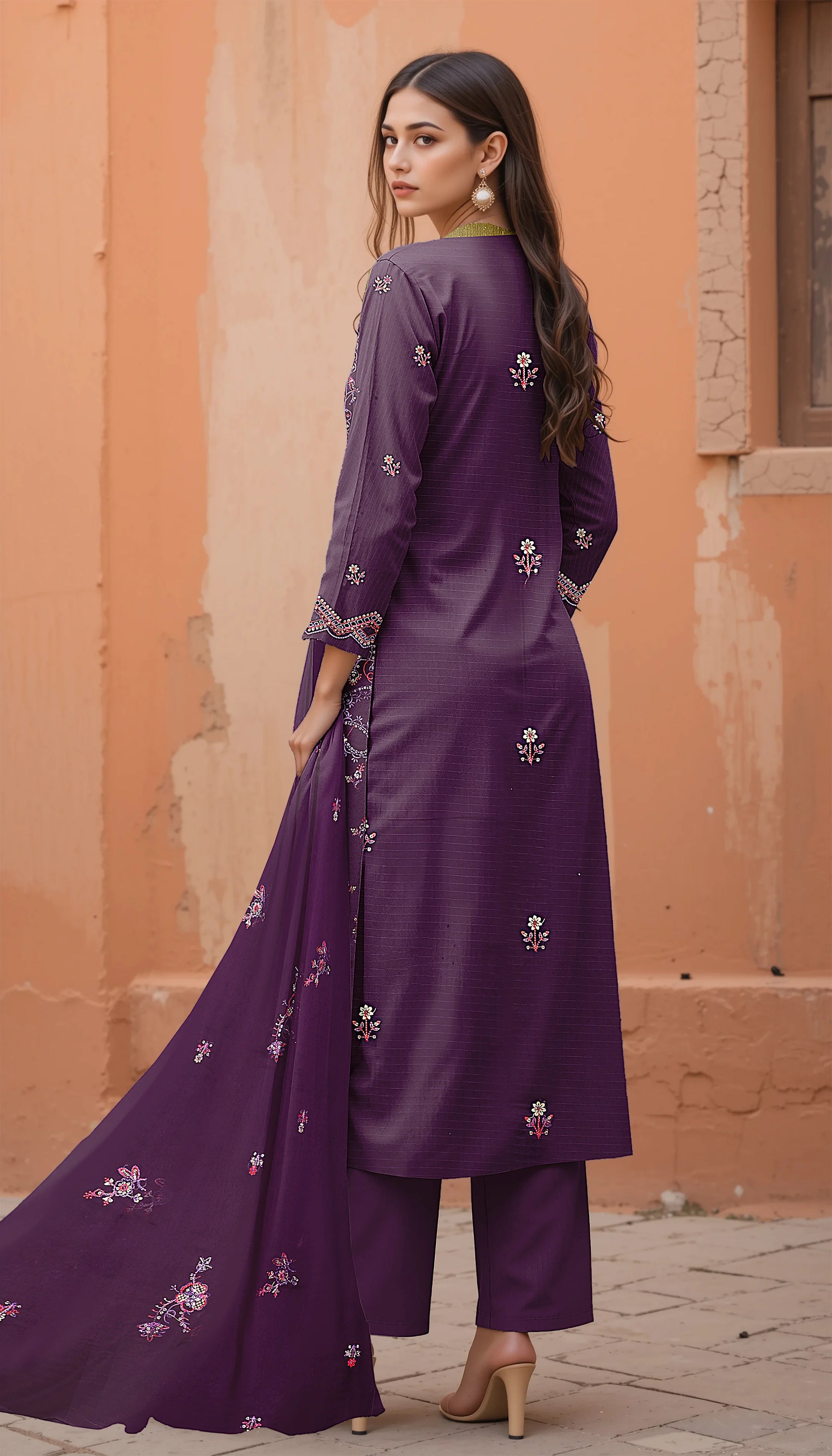 PURPLE VISCOSE EMBROIDERED | 3 PIECE | UNSTITCHED | 3601
