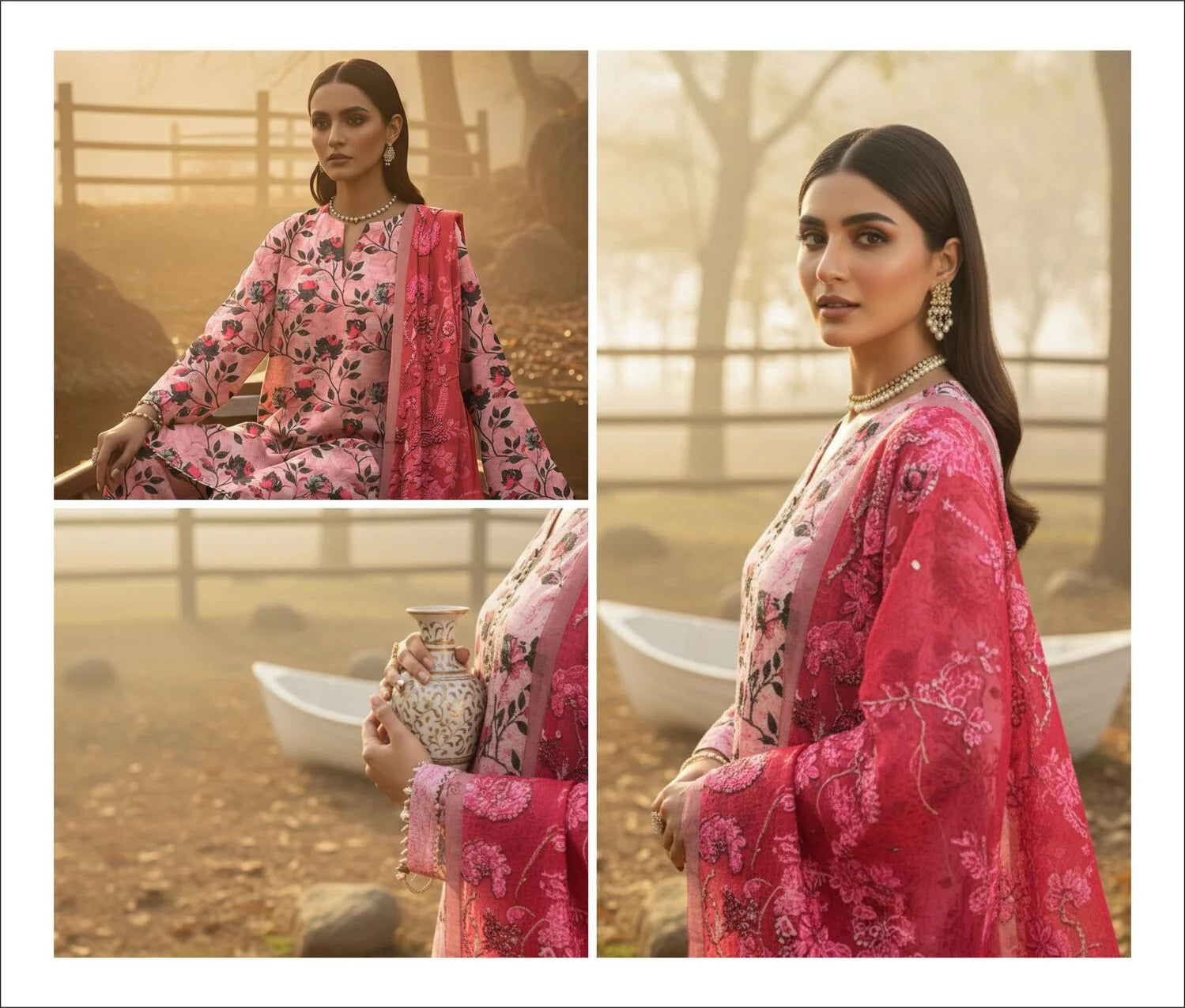 ROSE PINK PRINTED KARANDI | ALLOVER | UNSTITCHED | 3 PIECE | 4505